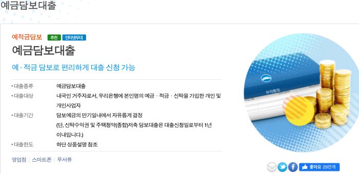 - 복잡한 소득이나 재직 증빙 서류도 필요 없어, 우리은행 예금담보대출 신청 절차가 매우 빠르고 간편합니다.