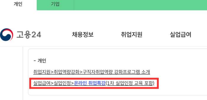 '실업급여 수급자를 위한' 또는 '구직활동 인정' 관련 강의를 선택해야 구직활동으로 인정됩니다.
